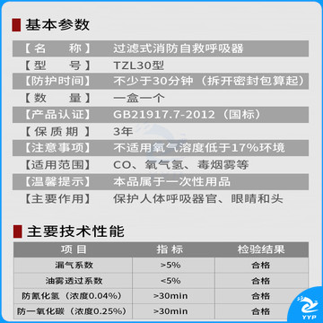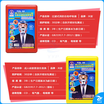 兴安消防 消防面罩 逃生面罩 火灾防烟防毒面具 过滤式自救呼吸器 TZL30型 成人款1个/盒