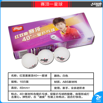 红双喜赛顶一星乒乓球40+白色(10只装)