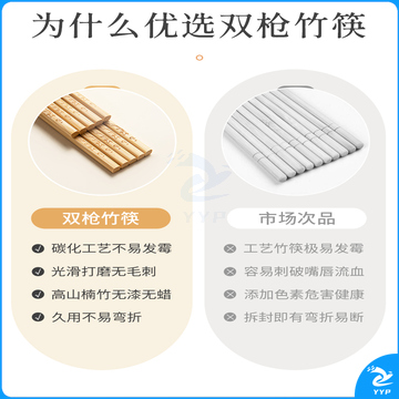 双枪竹筷无漆无蜡家庭碳化筷子10双不易发霉防滑家用餐具国潮快子