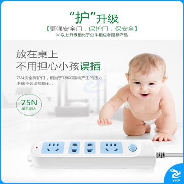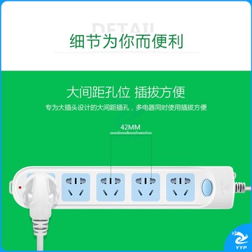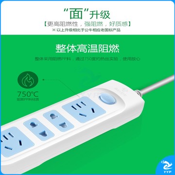 公牛插座带开关1.8米4插位4孔GN-607新国标插座/插线板/插排/排插/接线板/拖线板/电插板 5米GN-607