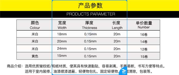 伏兴 FX945 美纹纸胶带 装修遮蔽带无痕纸 瓷砖美缝带1.8cm*20m 20卷装(箱)