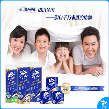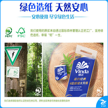 维达(Vinda)有芯卷纸 蓝色经典4层200克10卷 厚韧卫生纸 卷筒纸