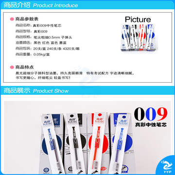 真彩GR-009中性笔芯通用拔盖子弹头水笔笔芯0.5mm替芯奖品礼物-黑色