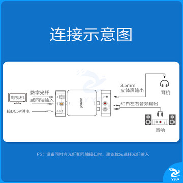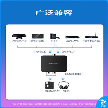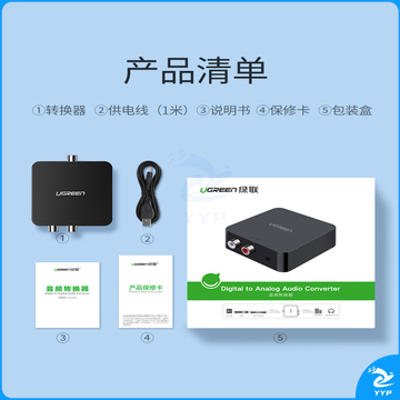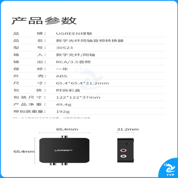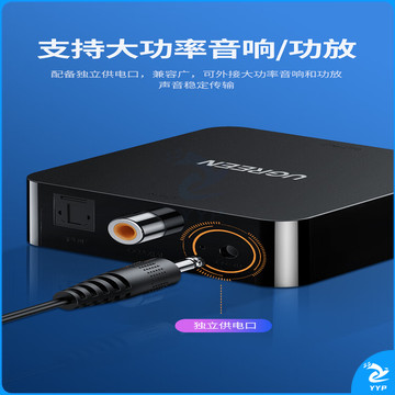 绿联(UGREEN)30523 数字光纤同轴音频转换器 支持电视机顶盒PS4接双莲花2RAC音响功放SPDIF转模拟3.5mm