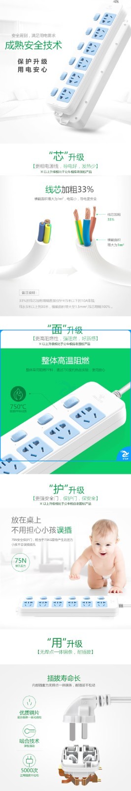 公牛(BULL)插座新国标/插排/1.8米 GN-317