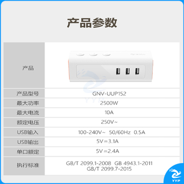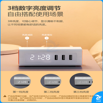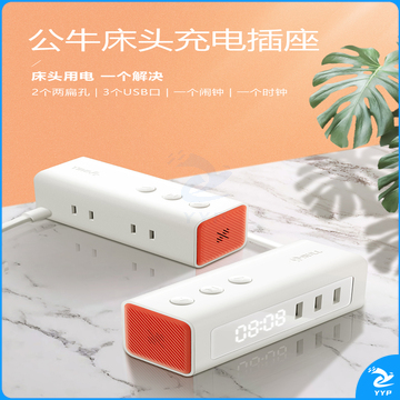 公牛(BULL)床头USB充电插座带闹钟/插线板/插排/排插/接线板/拖线板 GNV-UUP152 2位带USB全长1.5米
