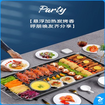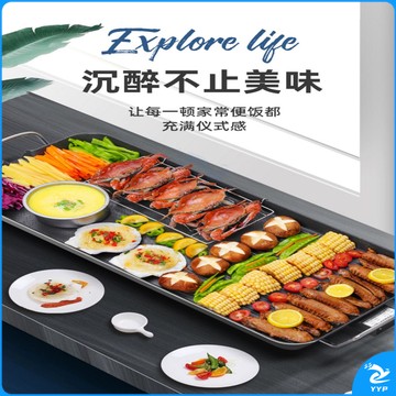 烧烤炉家用烤肉盘电烤盘铁板烧盘无烟电烧烤炉小烧烤架烤肉机用具TX 七件套 3C特大号电烤盘68*29CM