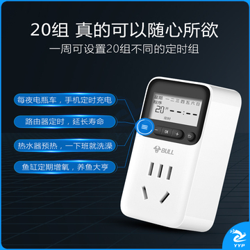 公牛(BULL)定时器插座/新国标电子定时通断电 20组定时器插座/转换器 7天24小时循环 GND-1