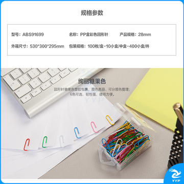 晨光 3号彩色回形针 曲别针 100枚 盒装ABS91699
