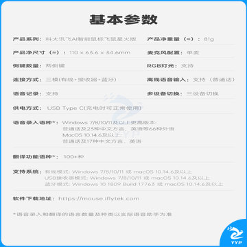 科大讯飞AI智能鼠标飞鼠星火版黑色智能语音鼠标飞鼠星火版语音录入文字无线蓝牙鼠标录便携办公轻音按键
