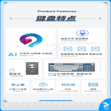 科大讯飞AI智能键盘T8星火版机械键盘无线蓝牙键盘AI写作问答智能PPT全键无冲三模连接