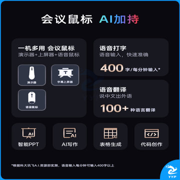 科大讯飞智能鼠标M610星火版黑色中手无线蓝牙双模办公鼠标AI智能鼠标轻量超薄鼠标便捷智能语音输入翻译