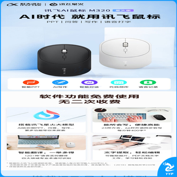 科大讯飞AI智能鼠标M320星火版白色AI写作问答智能生成PPT无线蓝牙轻音鼠标办公鼠标轻量化鼠标白色 白色