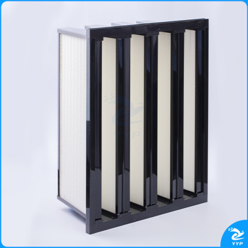 外框:聚丙烯塑料成型型材V型结构 滤材:抗菌玻纤复合滤材 效率H10 初阻力 ≤ 120Pa