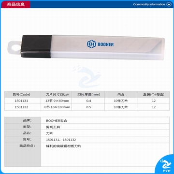 宝合(BOOHER) 1501132 10件美工刀刀片8节18x100mm(计价单位:套)