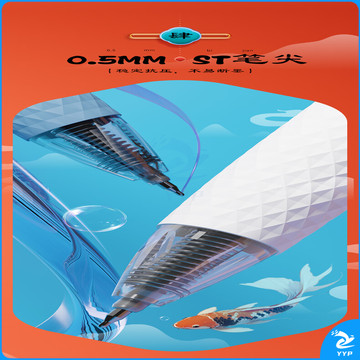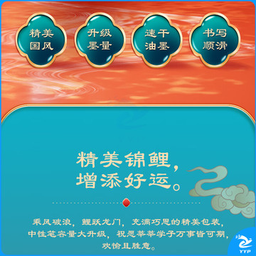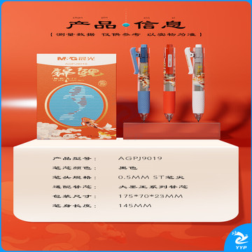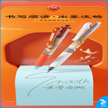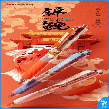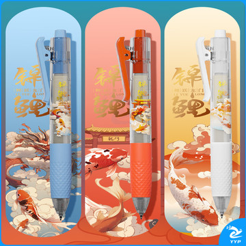 晨光(M&G)文具 黑色按动0.5mm中性笔 锦鲤大墨王高颜值国风签字笔 3支装 AGPJ9019