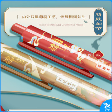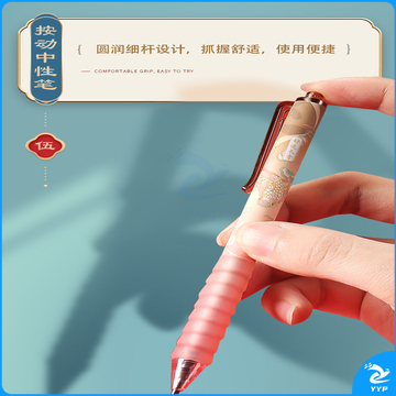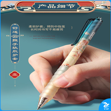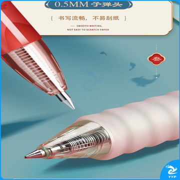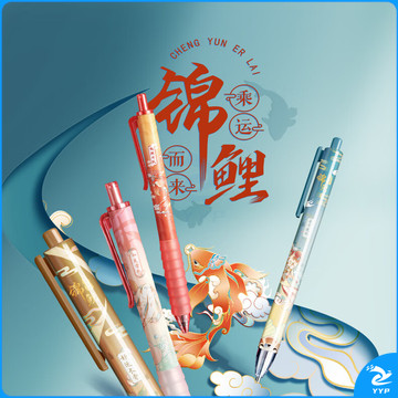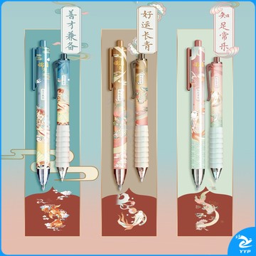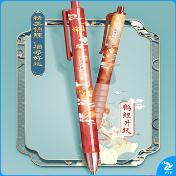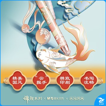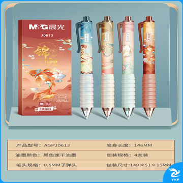 晨光(M&G) 黑色按动中性笔学生0.5签字碳素水笔商务子弹头锦鲤云握手 4支/盒AGPJ0613A