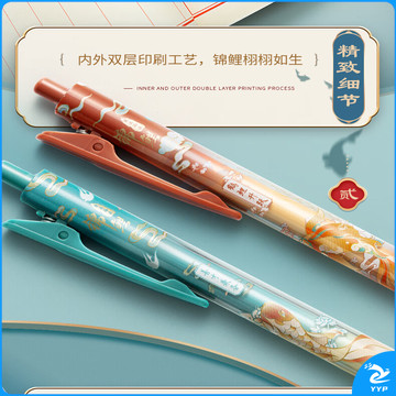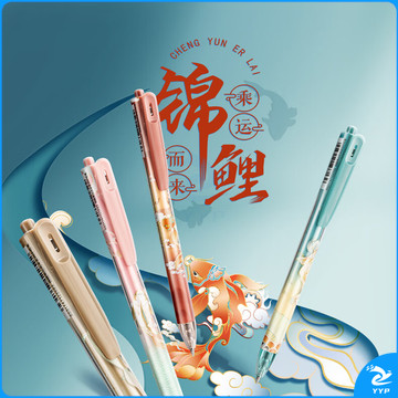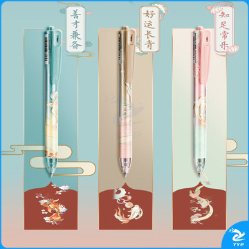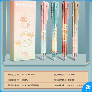 晨光(M&G)文具0.5mm黑色速干中性笔 按动子弹头签字笔 锦鲤系列水笔 4支/盒AGPJ5504