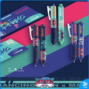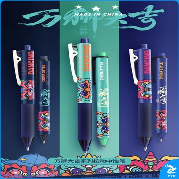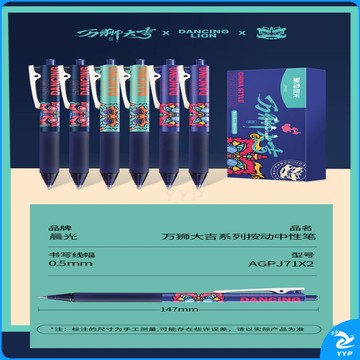 晨光(M&G)文具0.5mm黑色按动子弹头签字笔 万狮大吉系列水笔 6支/盒AGPJ71X211