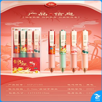 晨光(M&G)文具0.5mm黑色中性笔按动子弹头 锦鲤水笔 弹簧大笔夹 4支/盒AGPJ7105A