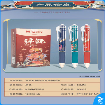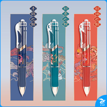 晨光(M&G)文具K35按动锦鲤国风中性笔 0.5mm黑色 速干弹头签字笔 12支装AGPK3559