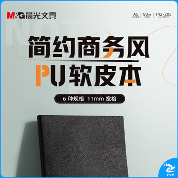 晨光(M&G)文具黑色软皮革面笔记本日记本记事本商务B5/18K 80张单本PB5842