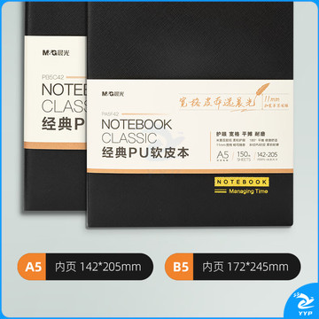 晨光(M&G)文具黑色软皮革面笔记本日记本记事本商务A5/25K 120张单本PA5C42