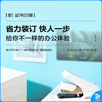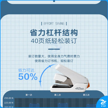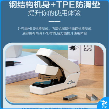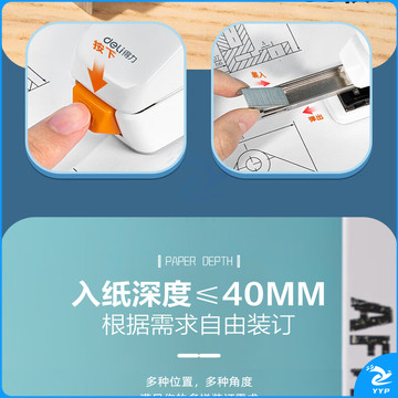 得力(deli)40页平钉省力订书机/订书器 防卡钉弹出式钉道 适配24/6钉 白色0370S