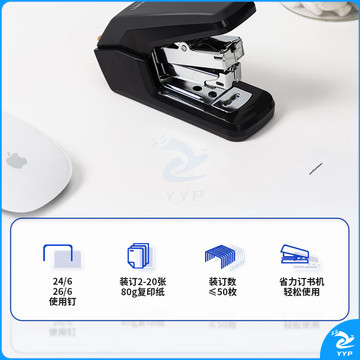 得力(deli)省力型订书机/订书器 适配24/6(12#)及26/6订书钉 黑色0370(不含钉)