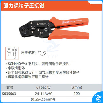 钢盾 SHEFFIELD S035063 强力裸端子压接钳24-14A