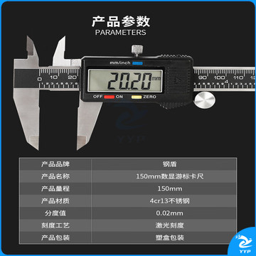 钢盾 SHEFFIELD S071012 高精度不锈钢数显游标卡尺 150mm 小型内径外径测量工具