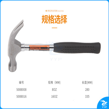 钢盾 SHEFFIELD S088008 钢柄羊角锤8oz 铁锤子木工铁榔头起钉拨钉锤敲击锤
