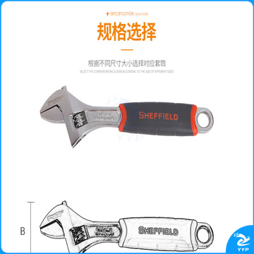 钢盾 SHEFFIELD S016706 双色套柄活扳手6寸 铬钒钢活扳手 激光刻度