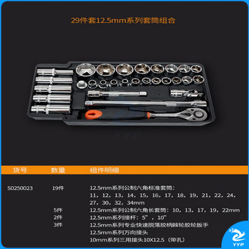 钢盾 (SHEFFIELD) S025023 29件套12.5mm系列套筒组合套装