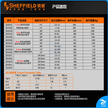 钢盾 (SHEFFIELD) S016103 10mm系列专业级可调式扭力扳手6-30N.m