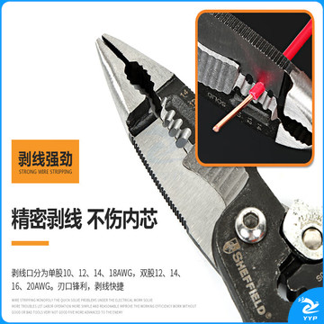 钢盾(SHEFFIELD)S035057 5合1多功能电工钳 9寸剥线剪线压接钳五金工具