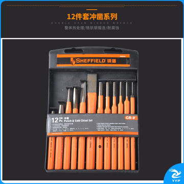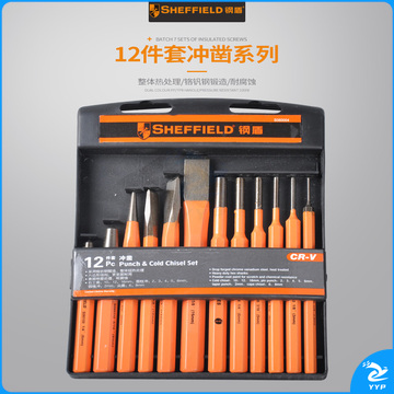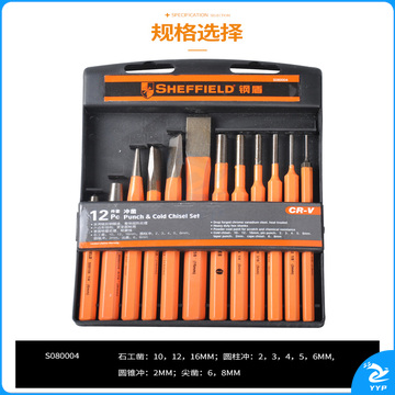 钢盾 SHEFFIELD S080004 石工凿圆柱冲 圆锥冲尖凿组套 12件套冲凿系列