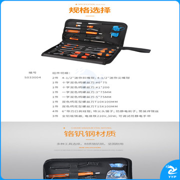 钢盾 SHEFFIELD S033004 15件套电讯维修工具 电工工具维修套装 15件电讯套装