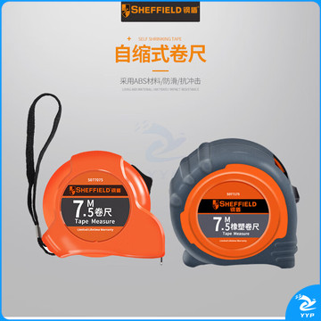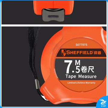 钢盾 SHEFFIELD S077175全包胶橡塑卷尺7.5m 公制卷尺木工伸缩尺带锁定皮扣测量工具