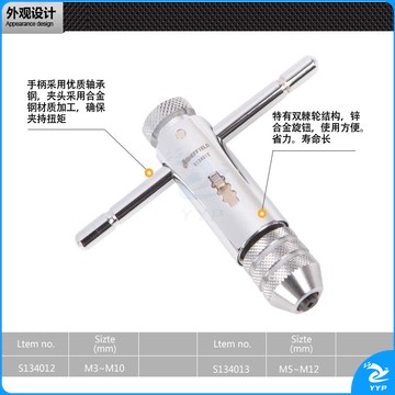 钢盾SHEFFIELD S134012T型棘轮丝锥绞手M3-M10 T型丝攻扳手 丝锥板牙夹头