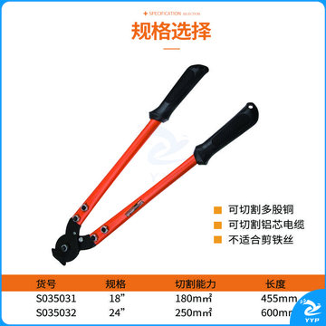 钢盾(SHEFFIELD)S035031 18手动电缆剪180m㎡以下 可剪切铜铝芯电缆断线钳
