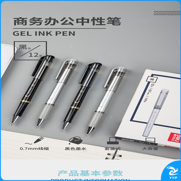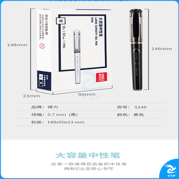 得力DL-S148 书写用笔类用具 0.7mm大容量中性笔水笔子弹头 12支/盒 黑色