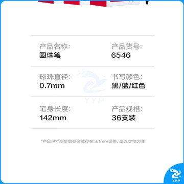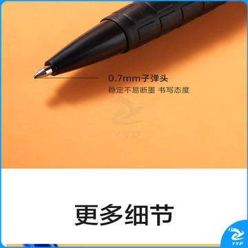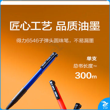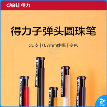 得力 YZB-6546 书写用笔类用具 0.7mm子弹头软胶握手原子笔按动笔 黑色 36支/盒