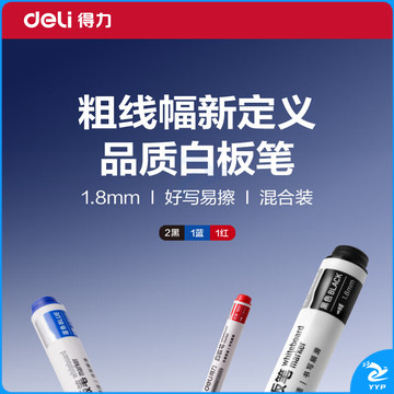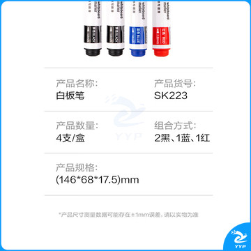 得力 SK223 书写用笔类用具 粗头可擦易擦白板笔 2黑1红1蓝混色 4支/盒