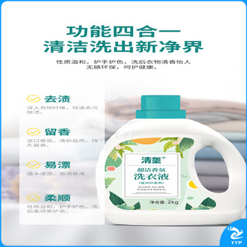 清玺 自然清香洗衣液家庭装手洗机洗瓶装内衣裤持久香味去渍洗衣液 2kg 8瓶 超洁洗衣液