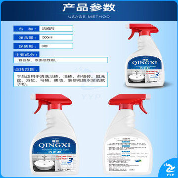 清玺 瓷砖清洁剂 瓷砖去污家用厕所卫生间草酸浴室水垢水锈皂垢清洗 500g洁瓷剂*1