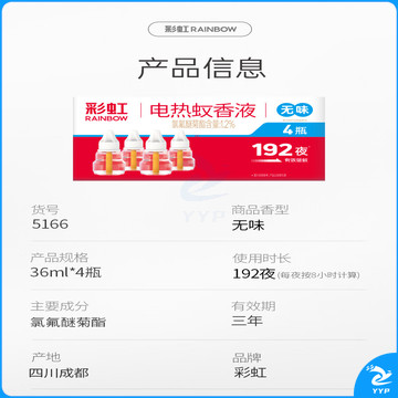 彩虹电热蚊香液四瓶装(无味)(5166)/盒