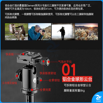 曼富图(Manfrotto) MKELEB5GY-BH铝合金灰色三脚架云台套装 ZCKJ000077