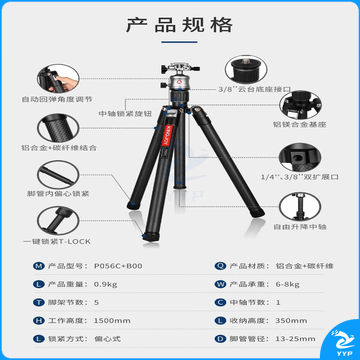 劲捷(KINGJOY)P056C相机三脚架碳纤维单反微单便携支架摄影拍照支撑架球形全景云台三角架 P056C云台套装
