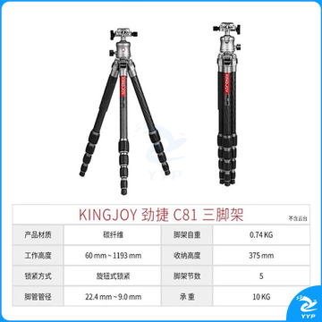 劲捷(KINGJOY)C81 海岳系列单反相机无中轴碳纤维三脚架球形云台套装 【单独三脚架】C81 不含云台